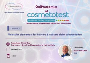 Join Martin BARAIBAR, CEO at OxiProteomics, for his academic conference titled “Molecular Biomarkers for Haircare & Nailcare Claim Substantiation” at the ENS-LYON on 25/05 during the Cosmetotest Clinical Day, Session 2: Growth and Regeneration of Hair and Nails. We are excited to invite you to this year’s Cosmetotest, the annual International Professional Symposium on Preclinical […]